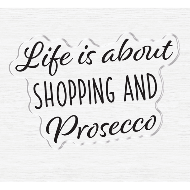 Crafter's Companion Quirky Sentiment Stamp Shopping and Prosecco features one stamp with a quirky sentiment ideal for cards and home decor projects.