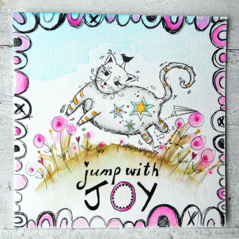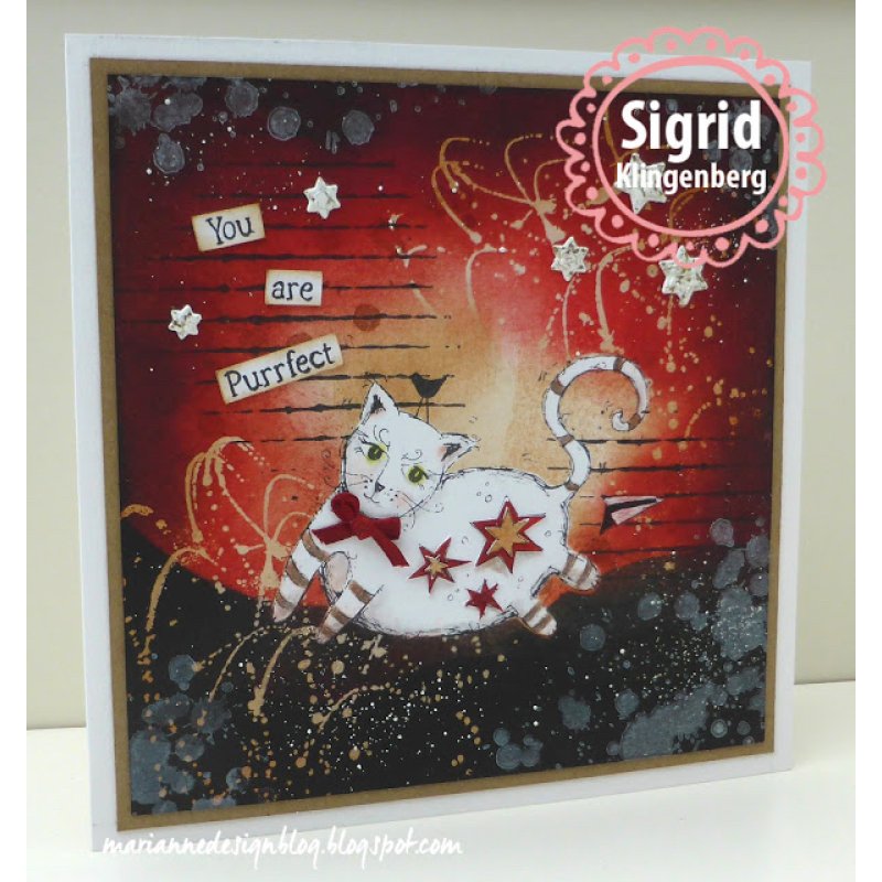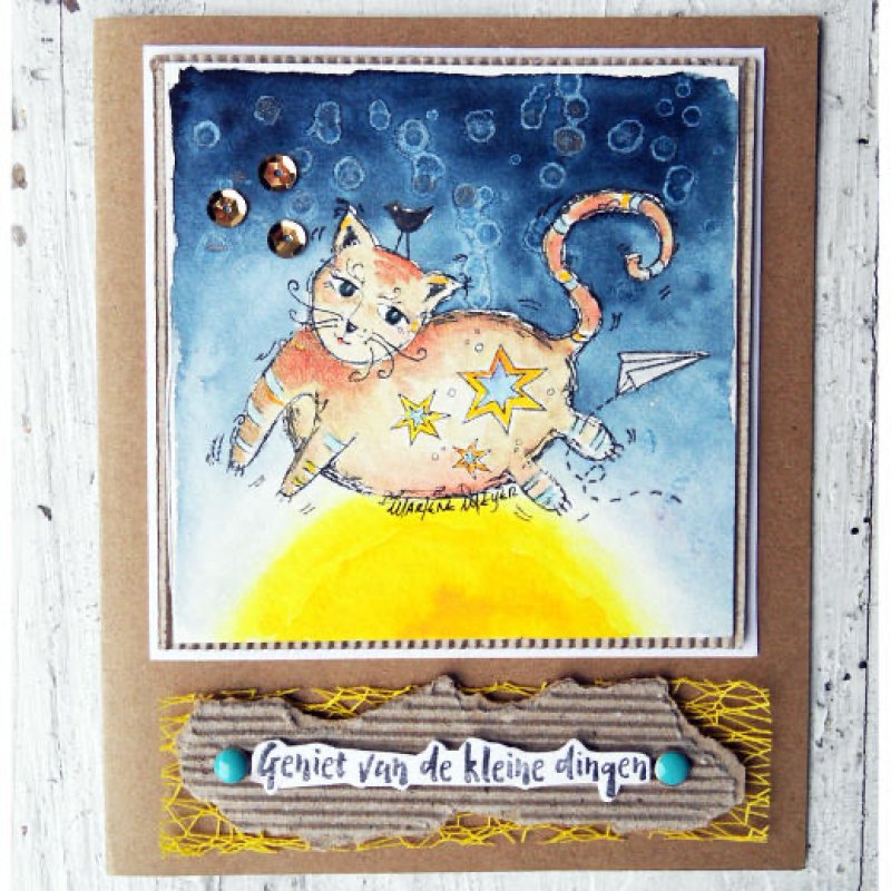 This clear stamp from Marianne Design features a cute leaping fat cat with a bird perched on its head. It is suitable for cardmaking, scrapbooking and mixed media projects.