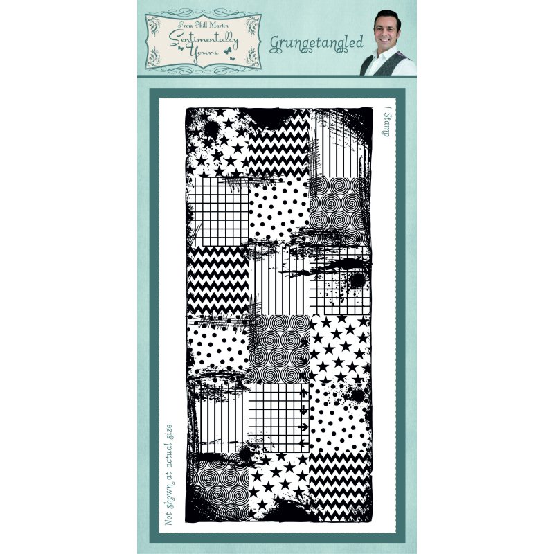 Grungetangled DL Rubber Stamp is part of the Sentimentally Yours collection by Phill Martin. This DL sized stamp features a patchwork of grungy patterns. Great for cards and mixed media projects.