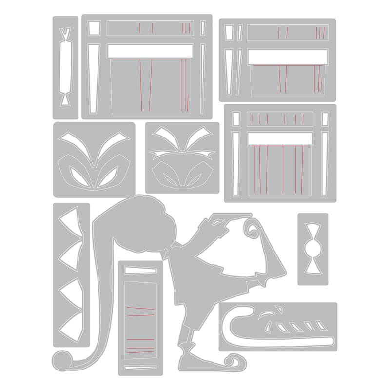 Tim Holtz designed Sizzix Thinlits 8pc set Santa's Helper features an elf carrying a stack of parcels and is ideal for Christmas cards and home decor