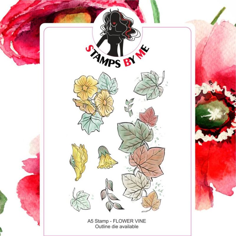 Stamps By Me A5 Stamps Flower Vine, produces beautiful stamped flower vines for papercraft, mixed media & home decor projects. There is a corresponding outline die set to enable you to perfectly cut your stamped images.