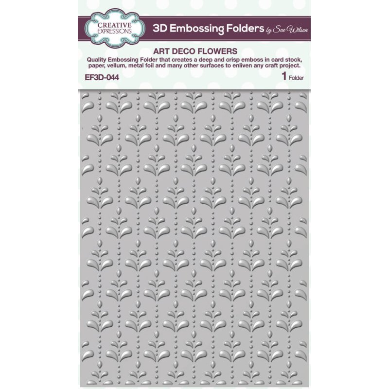Sue Wilson 3D Embossing Folder Art Deco Flowers produces a deep emboss design for your projects. Simply place your card inside the embossing folder and run it through your die-cutting machine to create a beautiful embossed design. Leave as is or highlight the detail with inks and paints. And did you know you can apply ink to the inside of the embossing folder, carefully place your card, run through your machine and then you will have a ready inked design! Experiment and see what amazing results you can achieve!