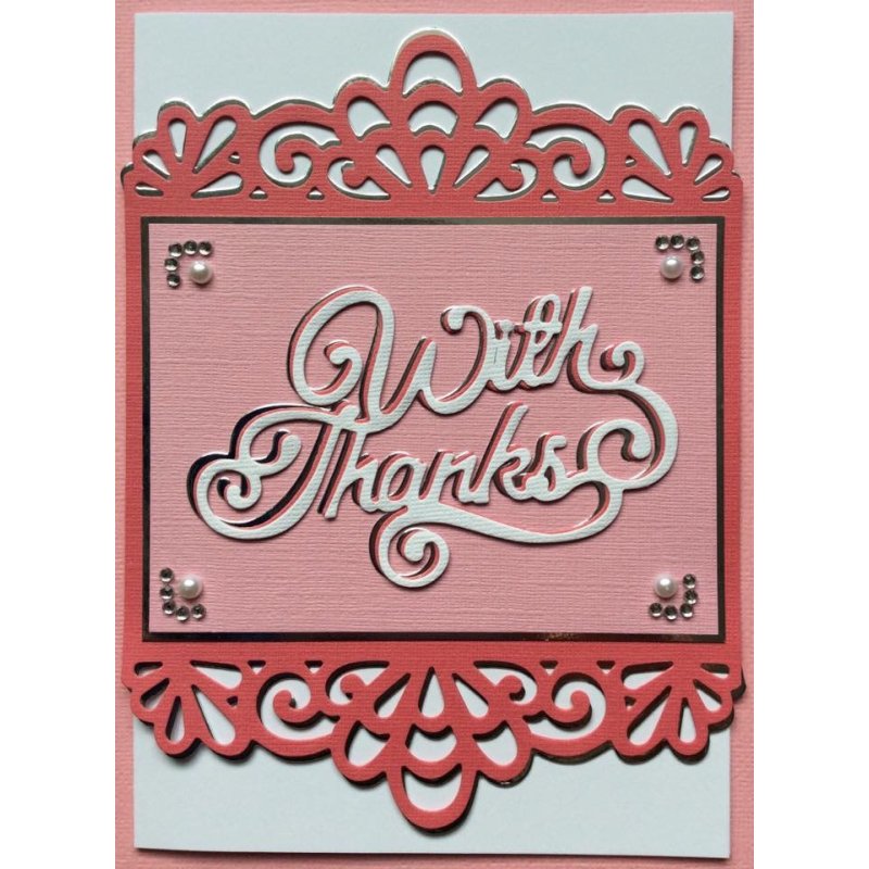 Such a pretty font for this sentiment die from Sweet Dixie, "With Thanks" - the perfect die for all those Thank You cards you'll be sending out after your Wedding!