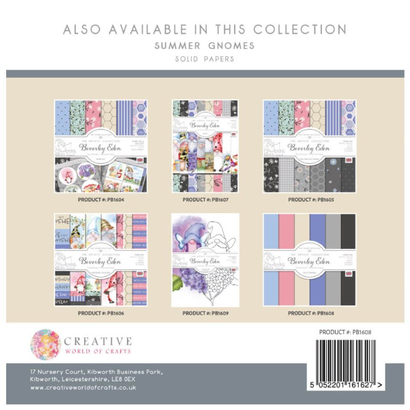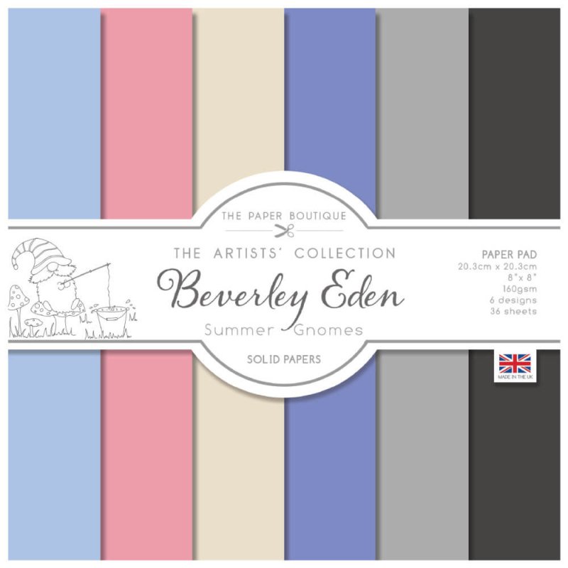 The Artists' Collection Beverley Eden Summer Gnomes Solids Papers, from The Paper Boutique, is a pad of 36 sheets of solid colours that are the perfect starting point for card making and other papercraft projects. At a size of 8x8 inches (20.3cm x 20.3cm), they are great for creating backgrounds, border strips and for matting and layering.